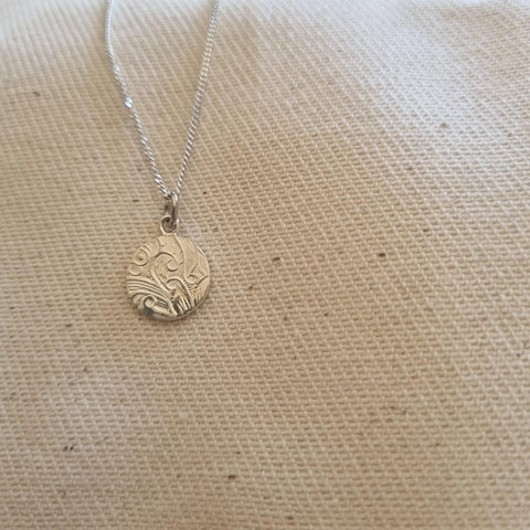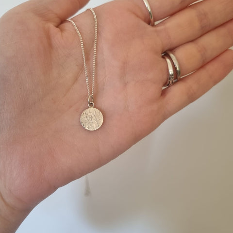 Handmade sterling silver leafy floral disc pendant